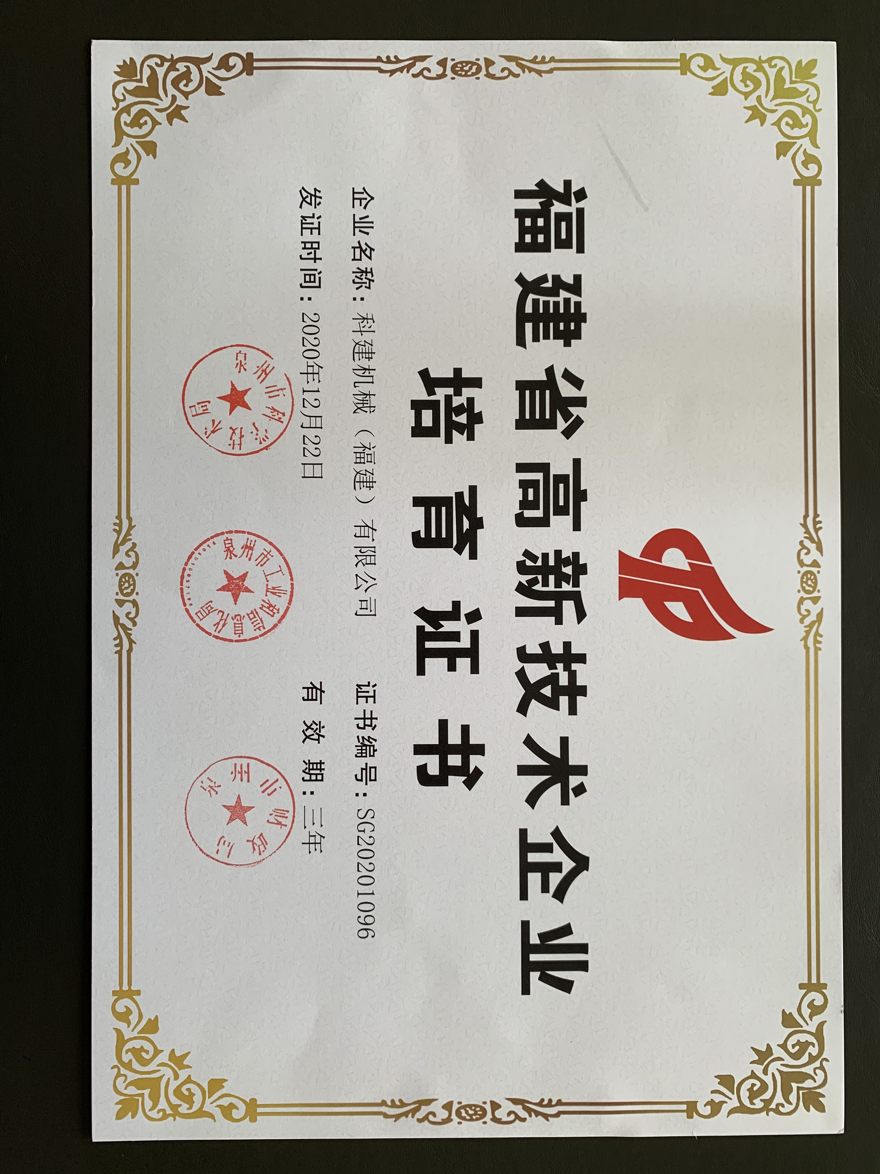 省高新技術(shù)企業(yè)證書